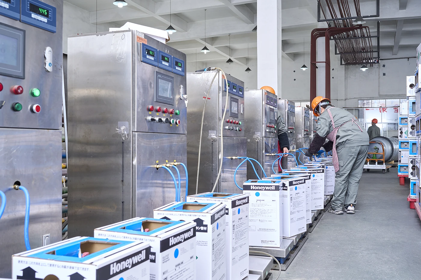 The company owned a set number of high-pressure tanks which could store nearly 6,000 m³ kinds of refrigerants, advanced automatic refrigerant filling lines, the annual peoduction capacity ,more than 50,000 tons.